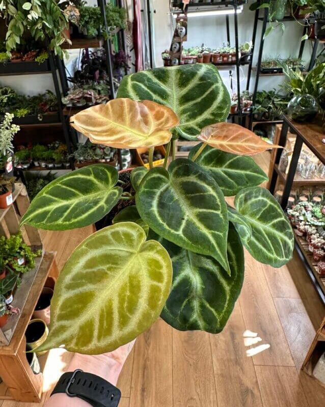 Despite its appearance, this Anthurium is surprisingly easy to care for. With moderate watering and bright, indirect light, it thrives making it a great choice even for beginners.