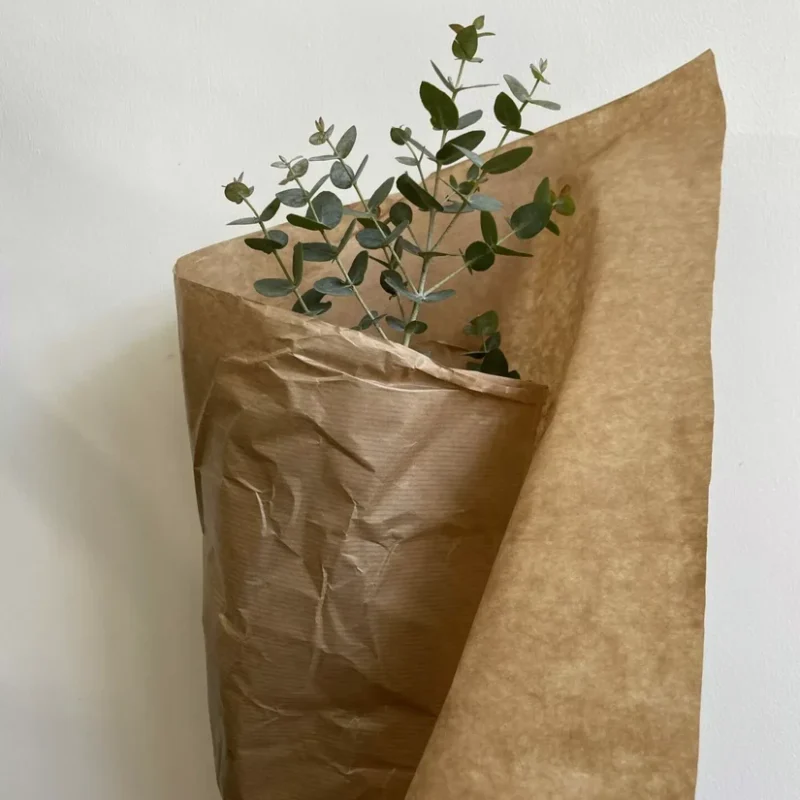 - Yes, our eucalyptus bouquet is wrapped in brown craft paper and tied with jute string, while the stem ends are secured in biodegradable cling film and sphagnum moss, aligning with our commitment to sustainability.
