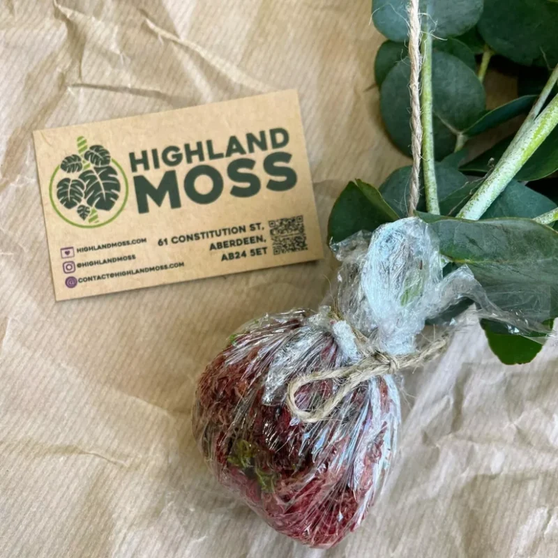 - To maximise its lifespan, hang the bouquet away from direct water flow and ensure the bathroom is well-ventilated to prevent mould growth. The fresh sphagnum moss around the stems helps retain moisture and freshness for about 7 days.