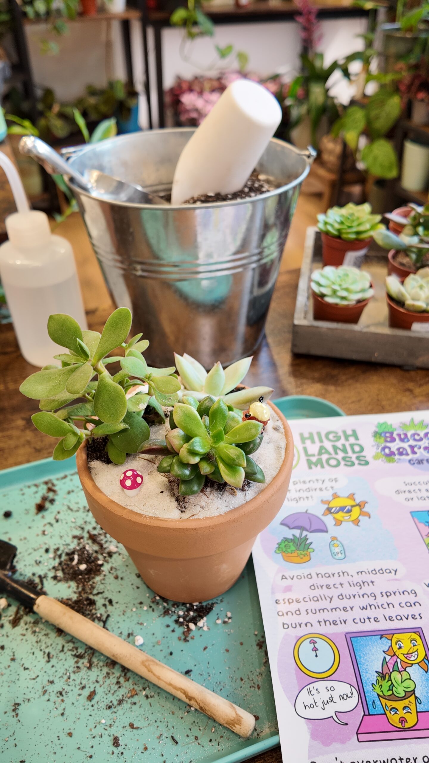 Our in-store workshops are designed to be mess-free, screen-free, and full of creativity. Each child gets to make their own plant-based creation and take home a beautifully illustrated care guide.