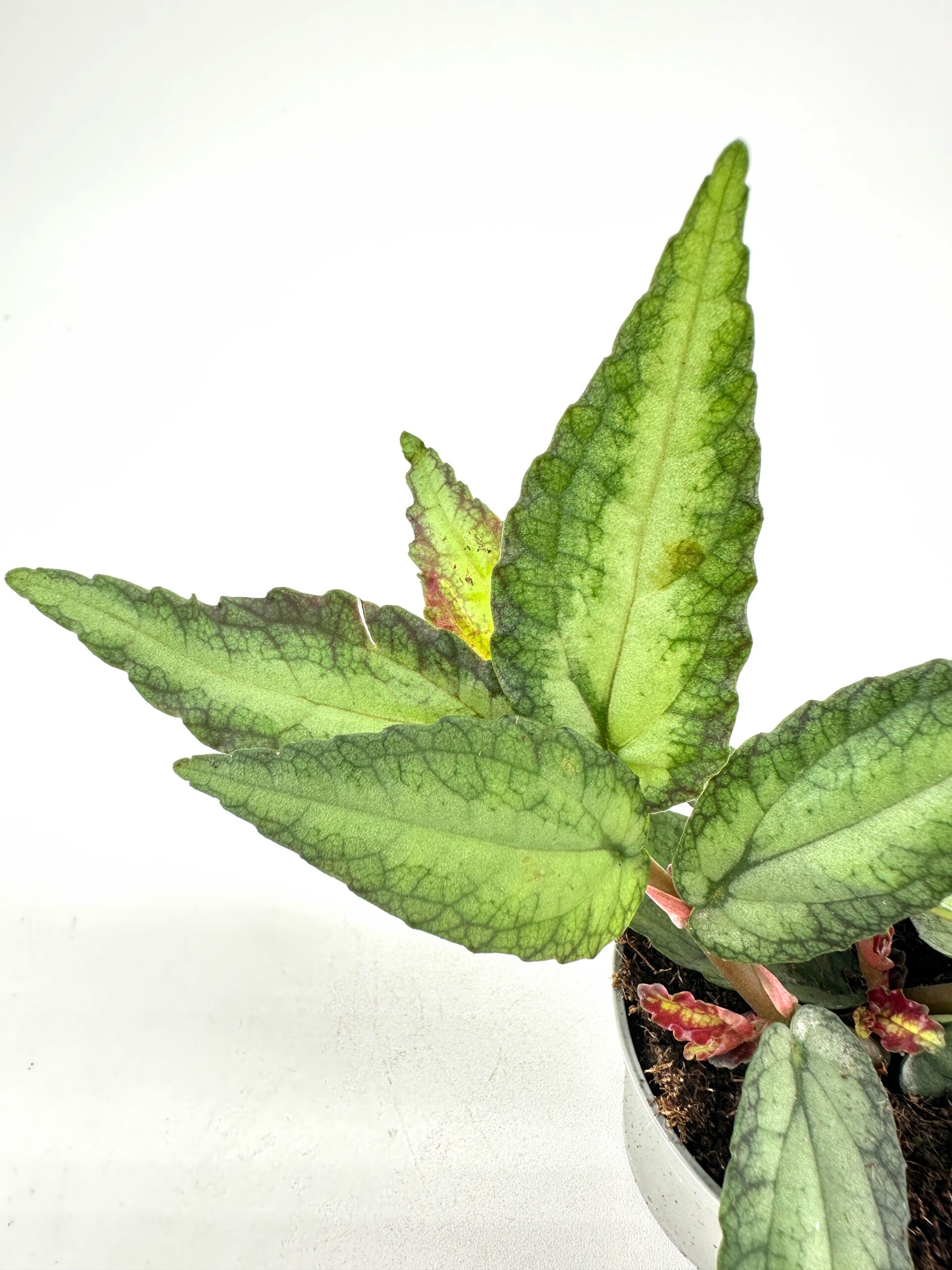 Bring a touch of lush greenery into your home with Pellionia repens, also known as the Trailing Watermelon Begonia. This charming trailing plant is prized for its striking patterned leaves with silvery-green veins and soft purple undersides. Its cascading growth habit makes it perfect for hanging planters, shelf displays, or adding texture to a terrarium.