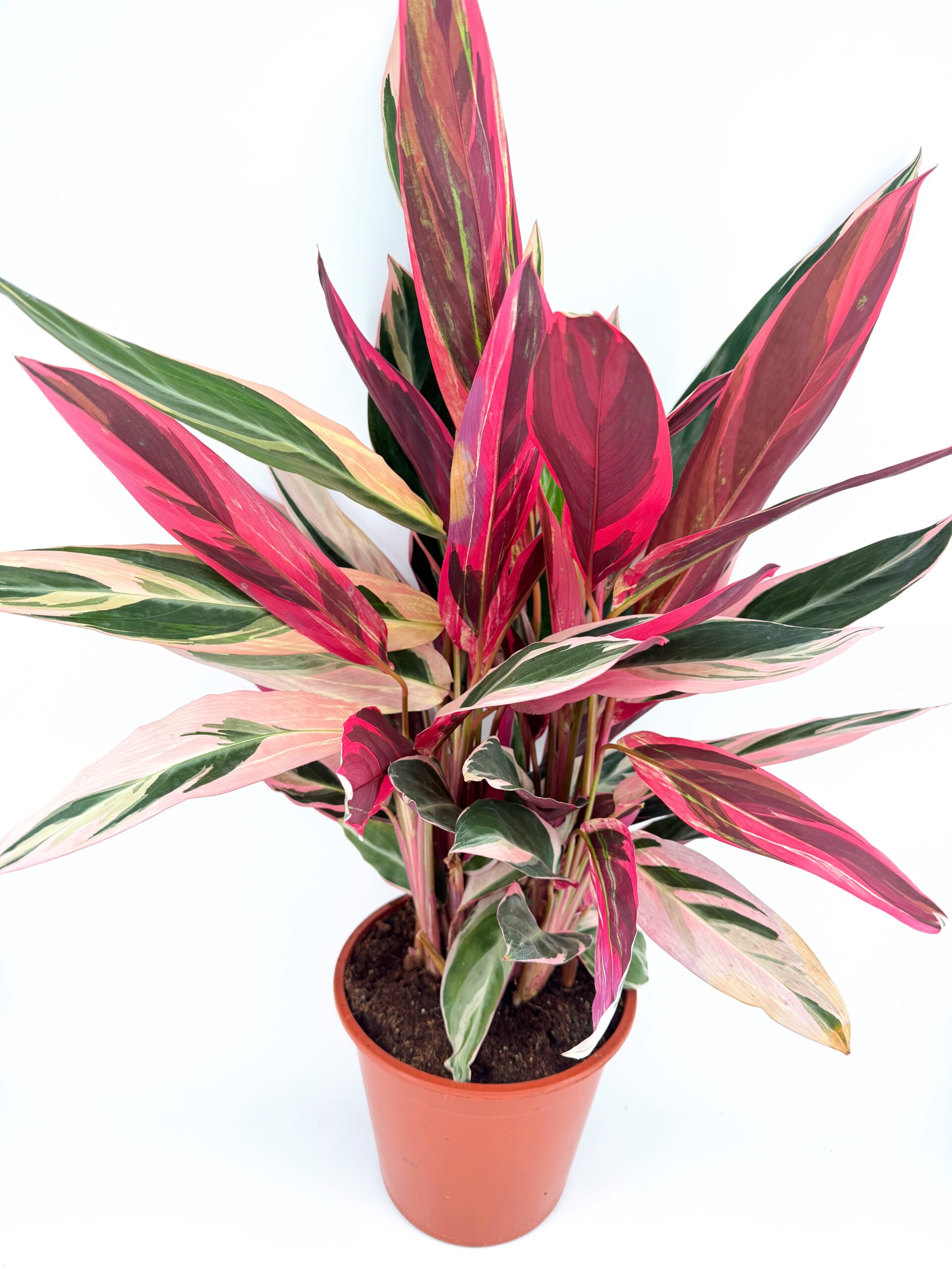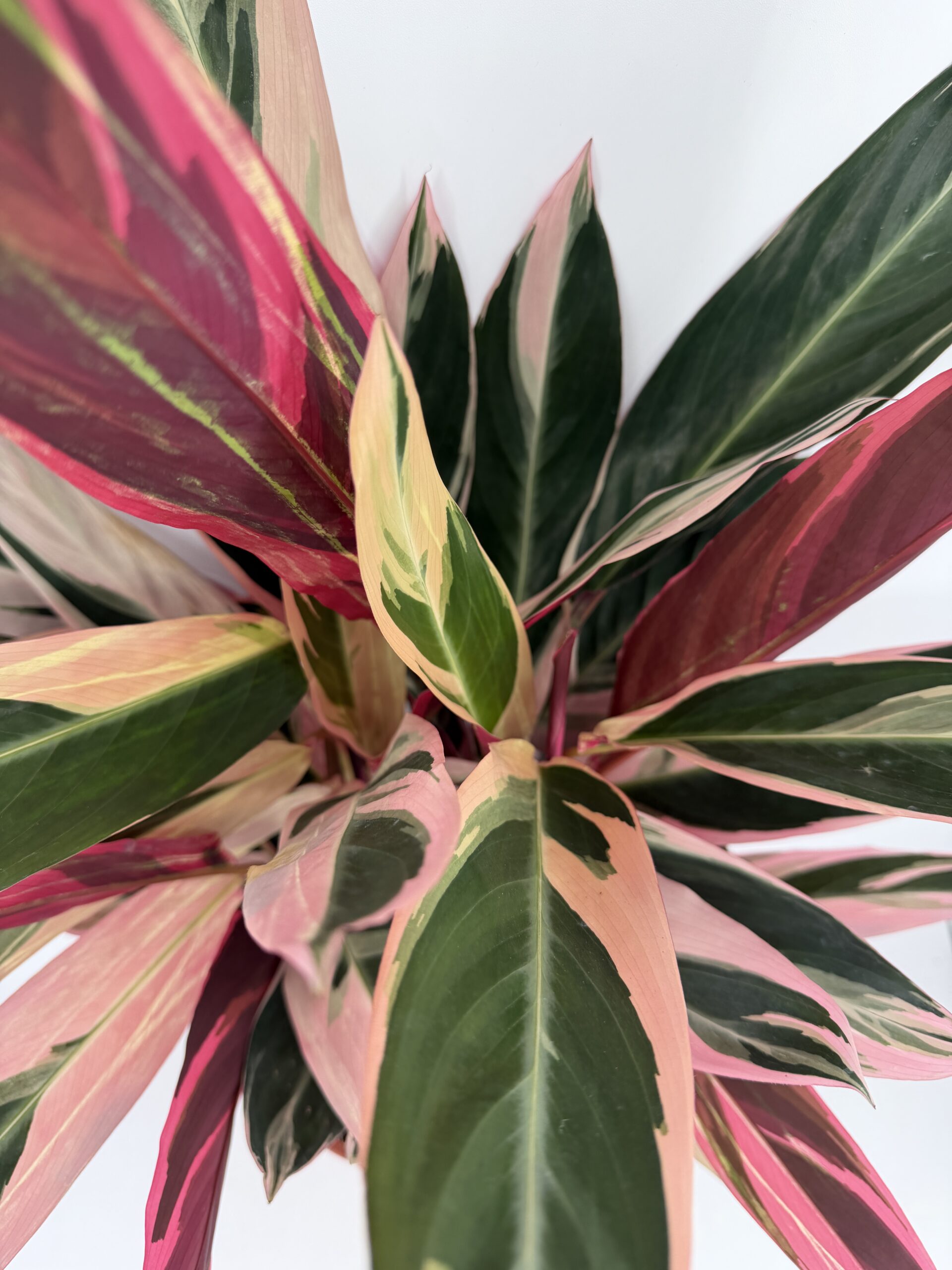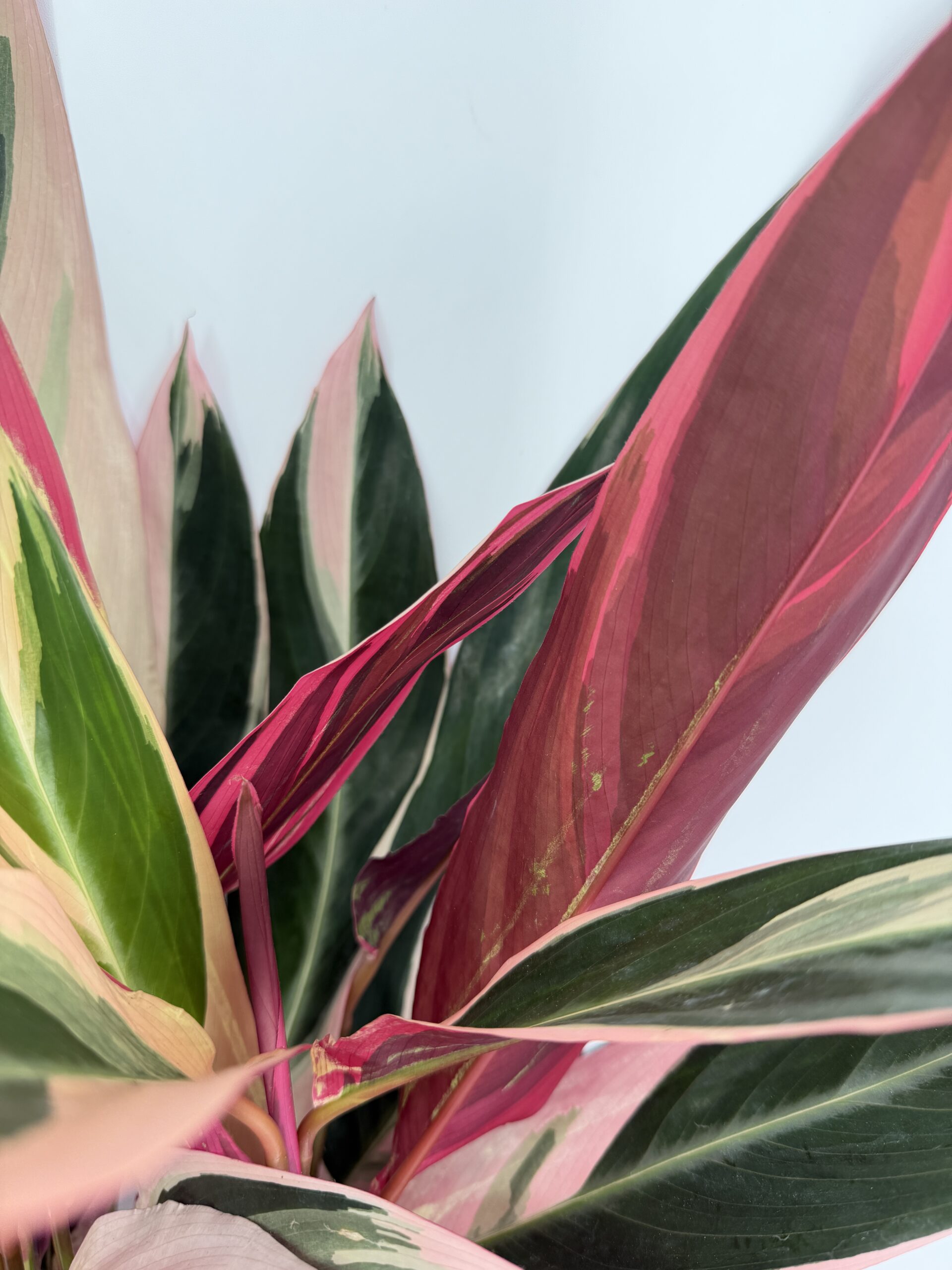 The Calathea Triostar Stromanthe Prayer Plant is a stunning houseplant known for its striking variegated leaves, featuring shades of deep green, creamy white, and vibrant pink. This tropical beauty belongs to the Marantaceae family and exhibits fascinating nyctinastic movements—its leaves fold up at night as if in prayer.