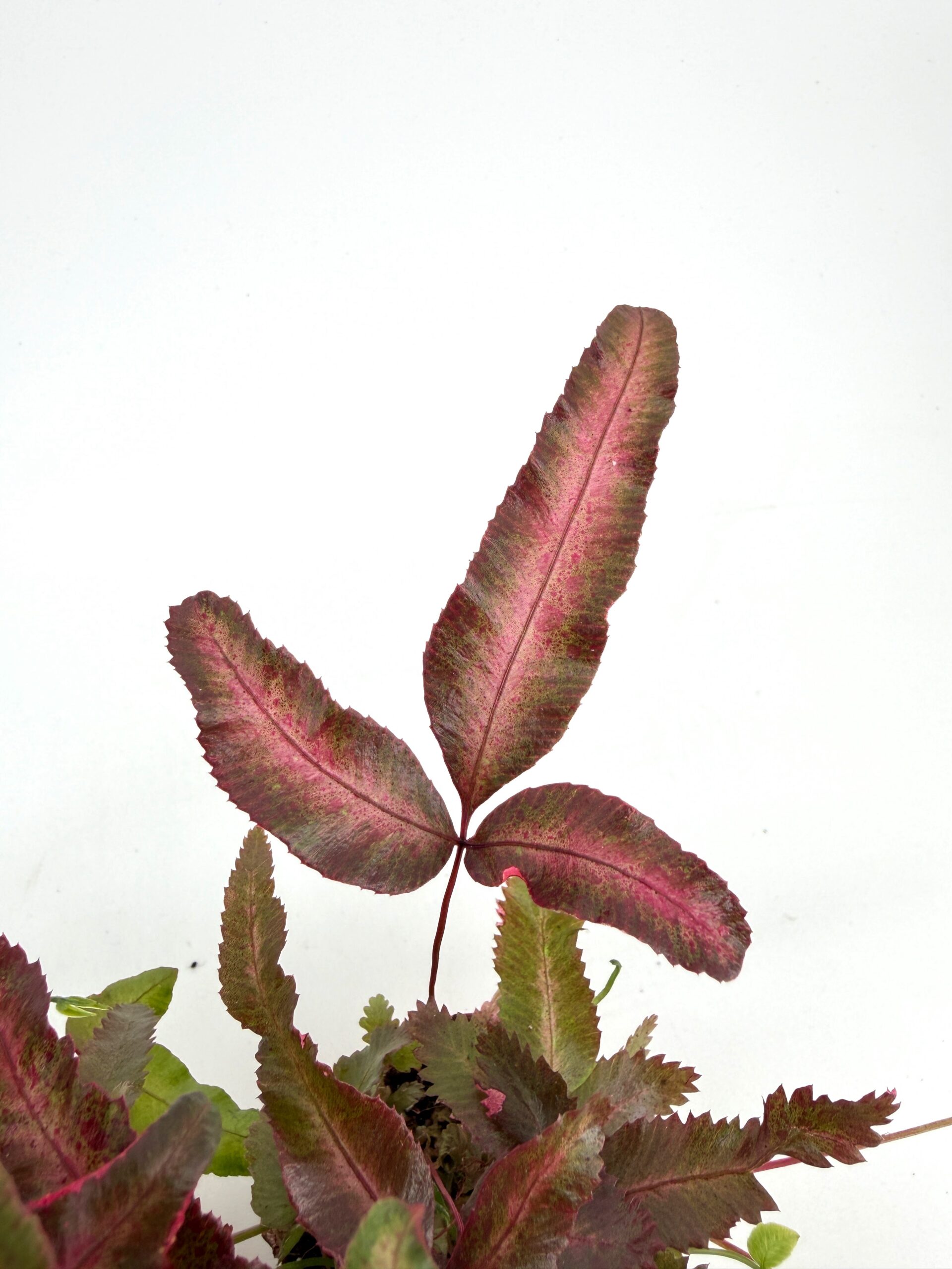 One of the most unusual features of Pteris cretica Albolineata is that some plants, but not all, may develop pink, rosy, or reddish hues on the white-variegated parts of the foliage. This natural colouration is usually most visible on younger fronds and fresh new growth, especially when grown in brighter light. As the fronds mature, these pink tones may fade to white or pale green. Please note that we cannot guarantee your plant will arrive showing pink colouration, as this varies from plant to plant and depends on growing conditions.