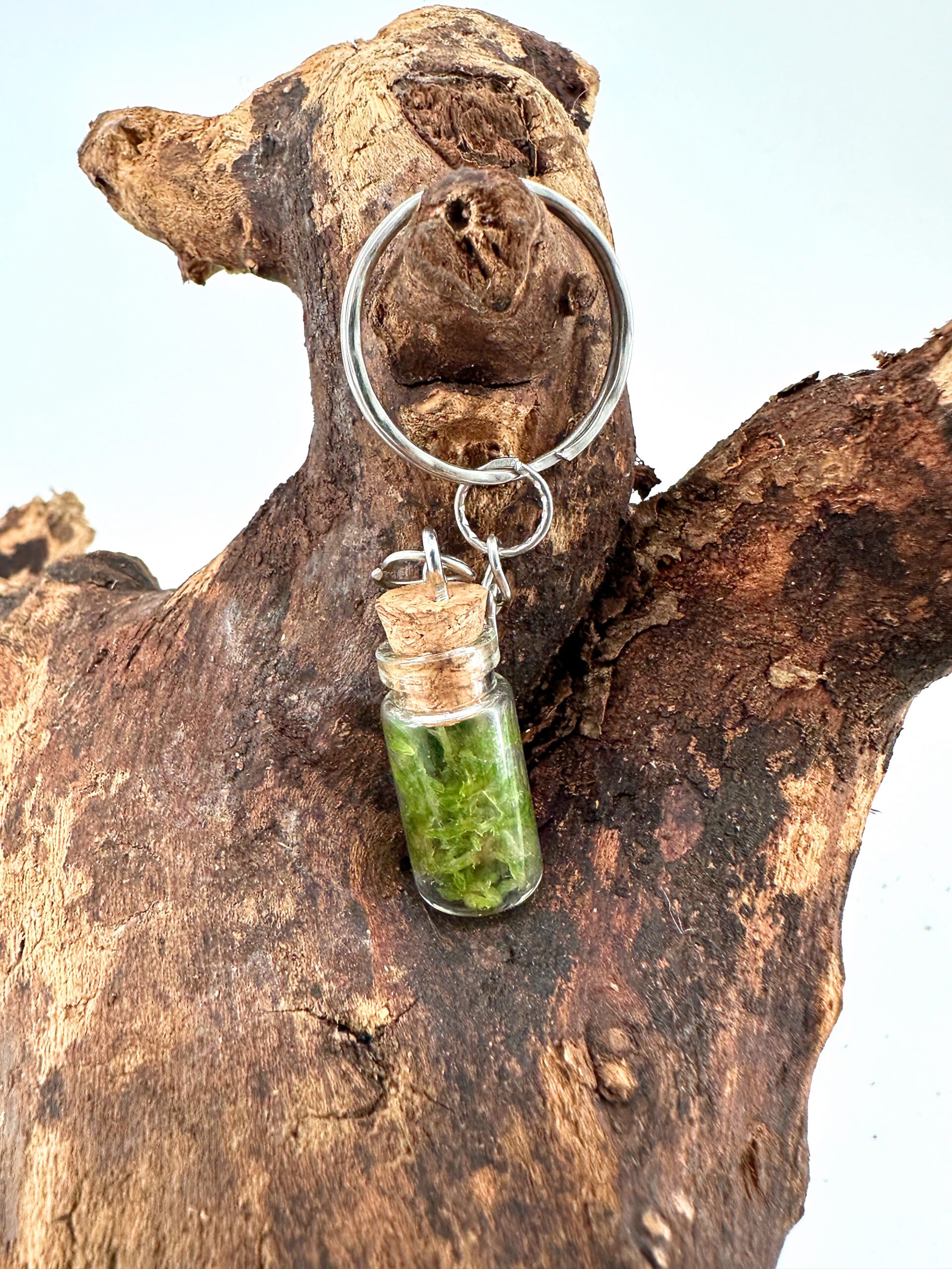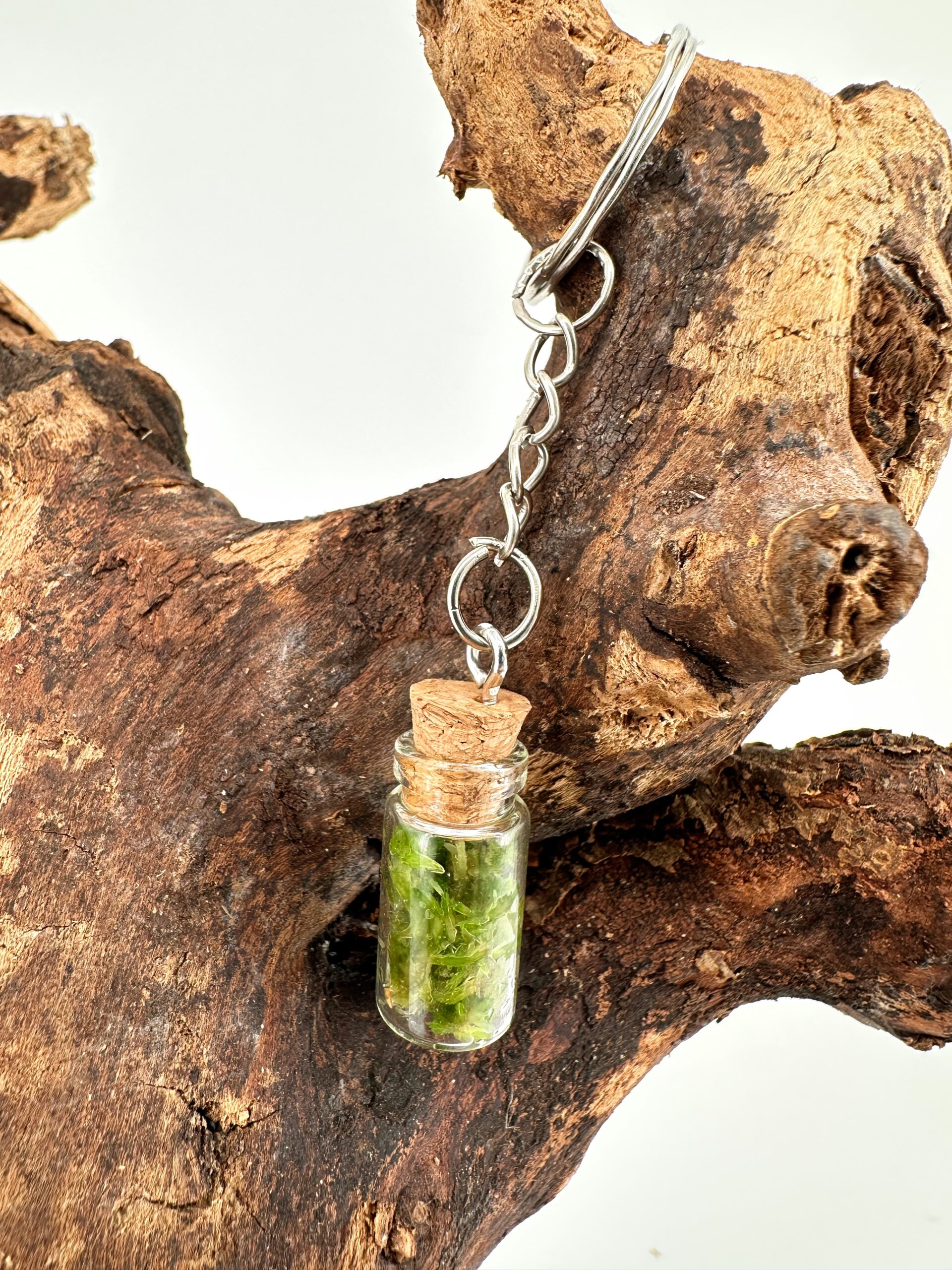 This the smallest moss terrarium keyring holds real live Highland sphagnum moss in a tiny glass jar with a natural cork lid. Each piece is one of a kind, made in our workshop with care. Perfect as a gift for plant lovers, beginners, or kids, it can be used as a keyring or turned into a base for a DIY necklace, earrings or charm.