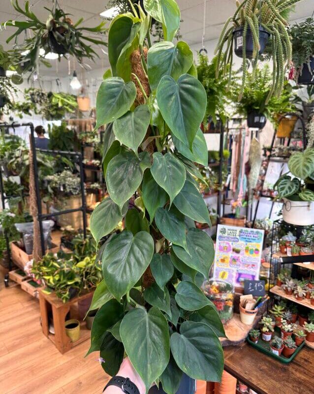 Philodendrons would enjoy a warm spot in bright indirect light and be watered when the soil dries out. Make sure that the pot does not touch the water. They like to climb on trees so we advise providing a moss pole to encourage the plant to grow faster and produce bigger leaves. Moss poles help to maintain an adequate level of humidity as well as provide beauty and something to climb on. Mist the plant and moss pole every few days or every day during summertime.