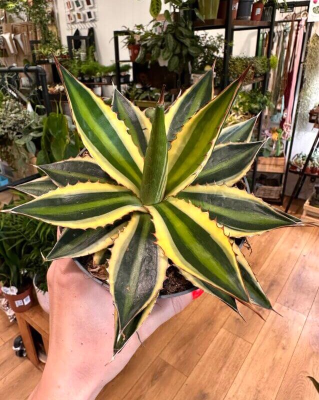 The Agave Lophantha Quadricolor is not only easy to care for but also serves as a stunning decor piece with its unique variegated leaves and striking form.