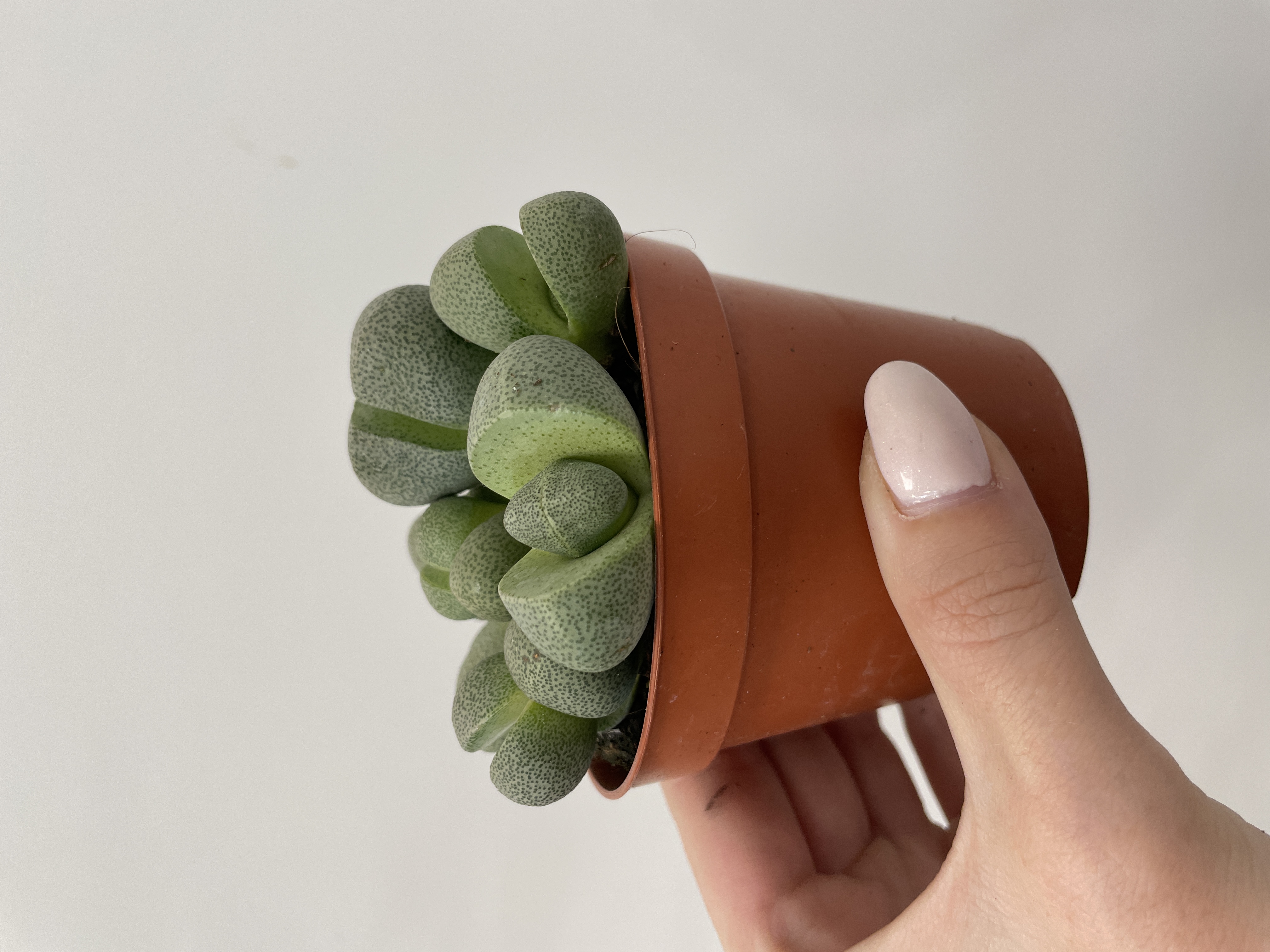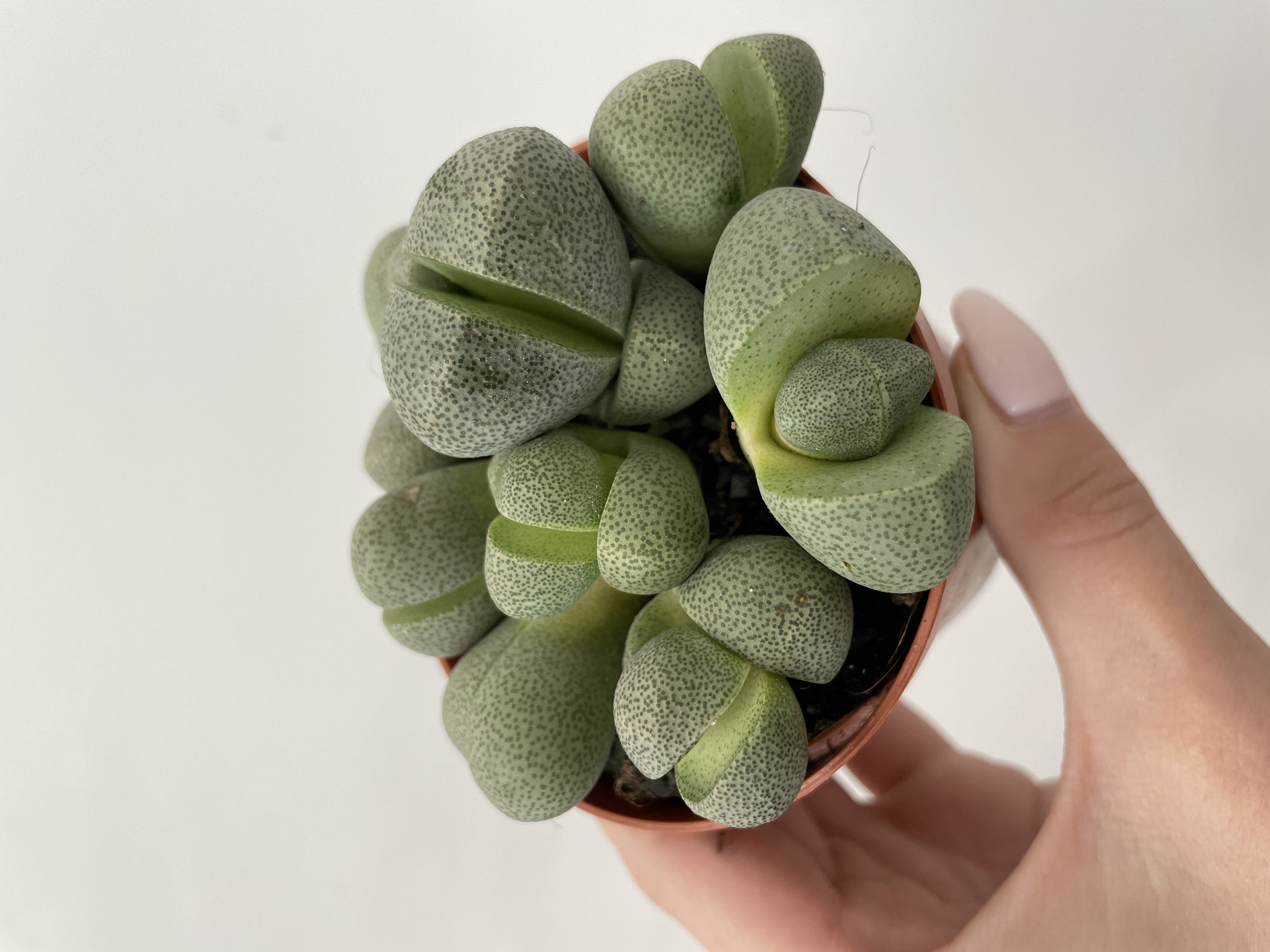 While this plant is not a true Lithops they are very closely related and fall within the same family. This highly unusual living stone produces some of the weirdest-shaped light green/blue bulbous leaves. This slow-growing oddity can produce gorgeous eye-catching yellow flowers that sit high above the plant. A true marvel of nature!