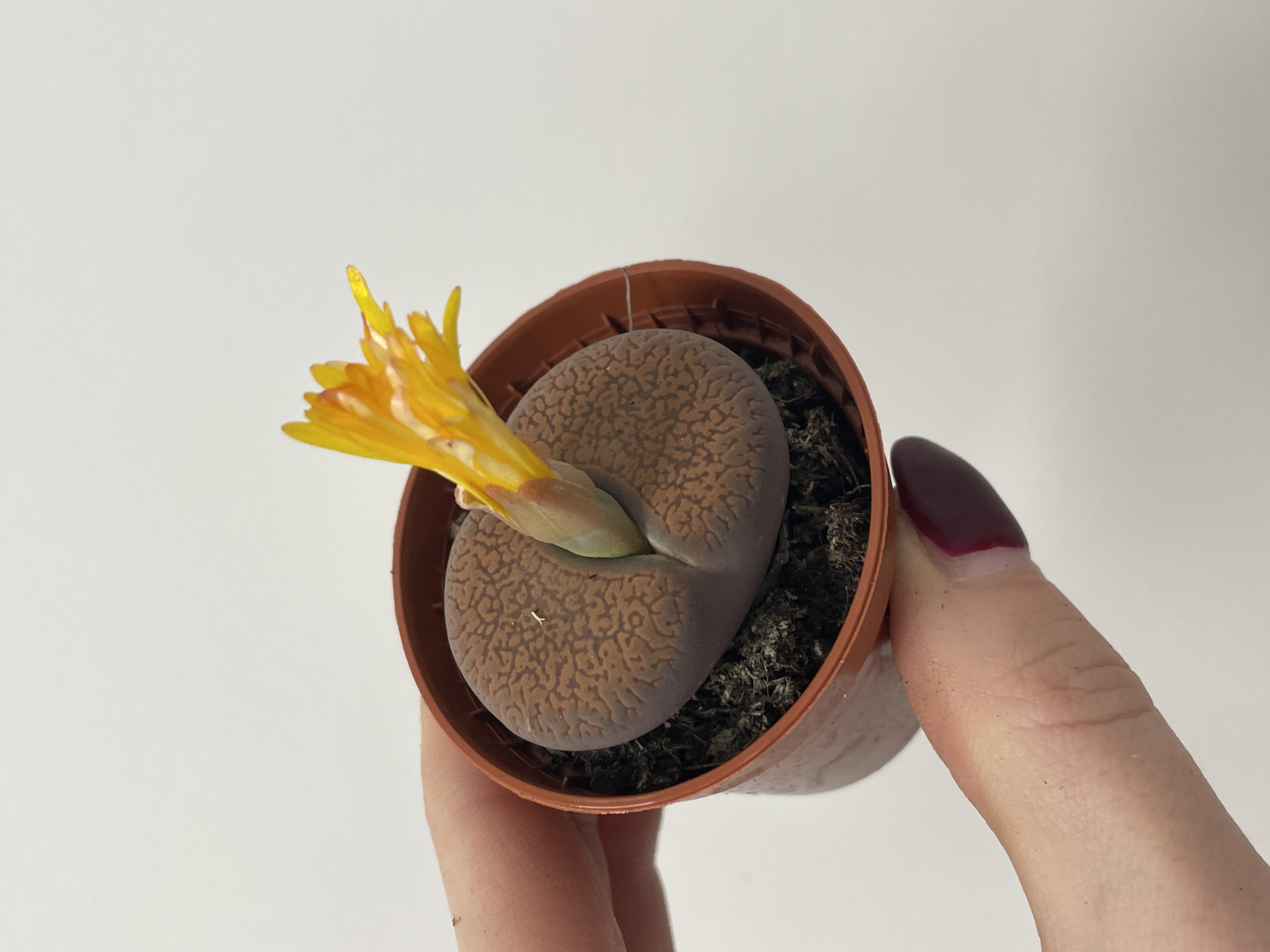 Mature Lithops will produce flowers, they will need to be at least three years old before they are able to flower. This would be the only time the plant would benefit from a very small amount of heavily diluted Cacti and Succulent feed.