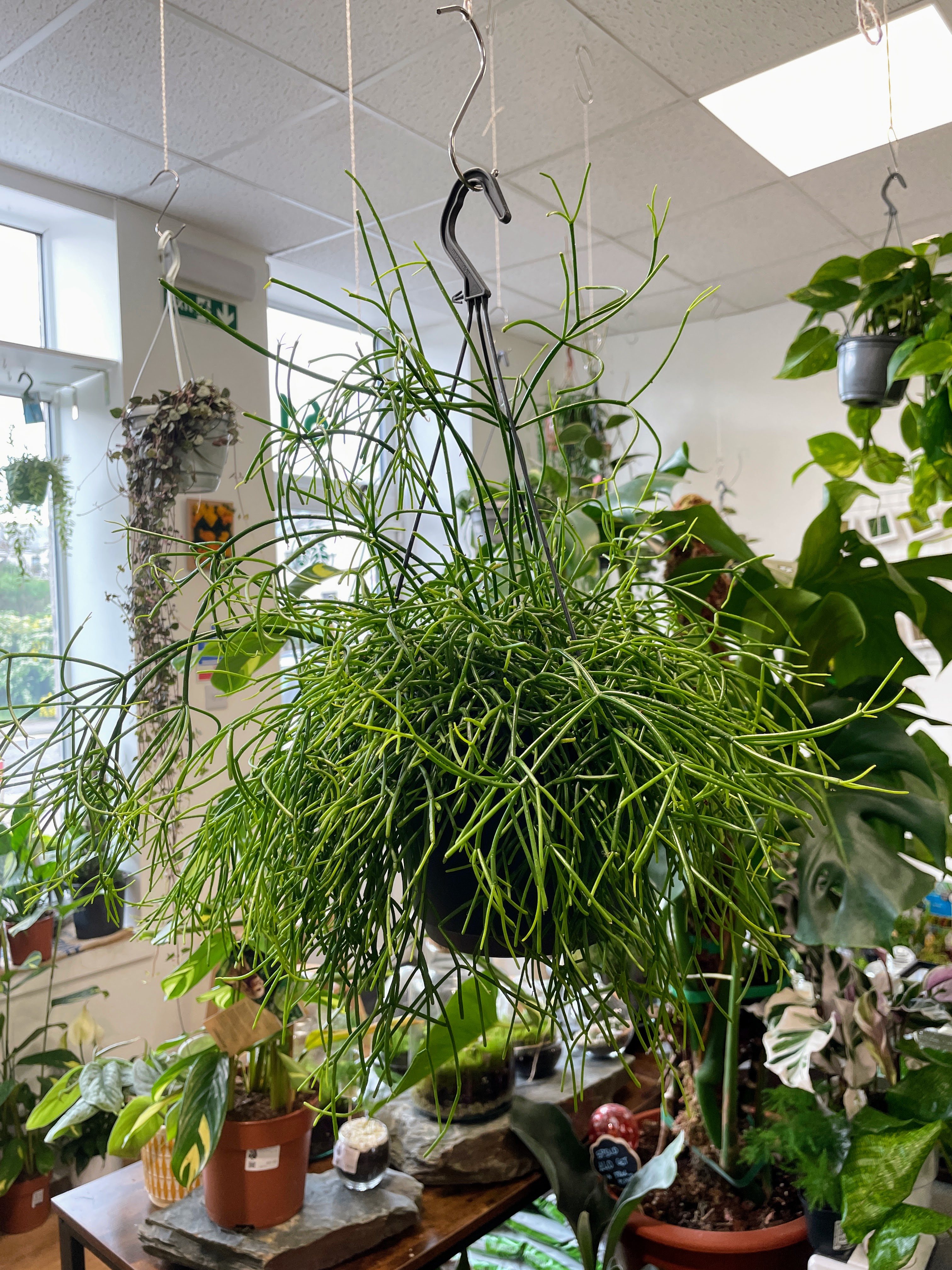 This stunning plant is more of a trailing wonder, in its natural habitat, it produces narrow thread-like stems that wrap and twist around trees stretching out up to 30 feet long, producing gorgeous displays of red, yellow, orange or white flowers that eventually turn into berries. While not impossible for it to flower as a houseplant it is highly unlikely to be able to recreate its natural conditions well enough to encourage them to flower but nonetheless still makes for a stunning trailing houseplant.