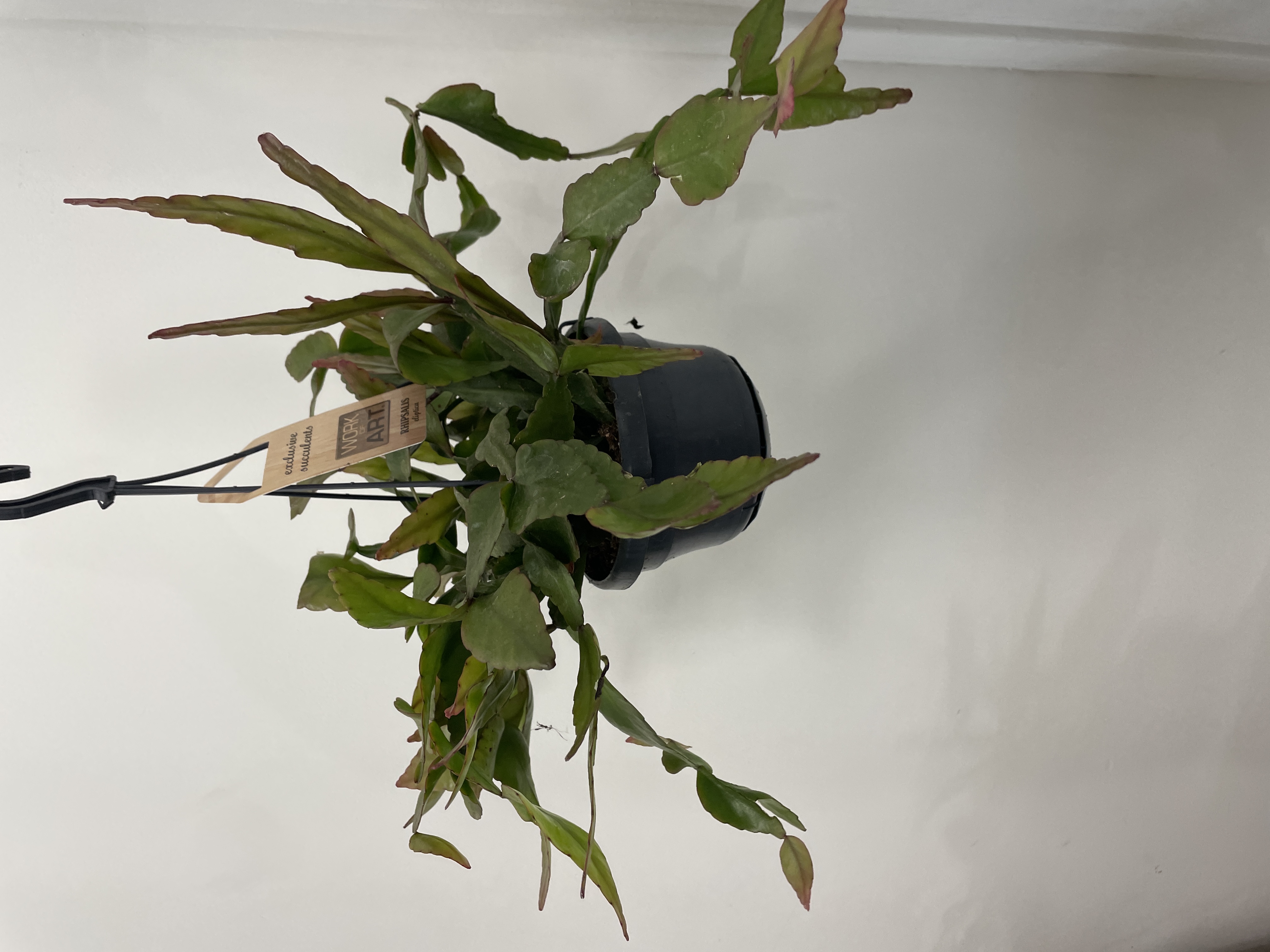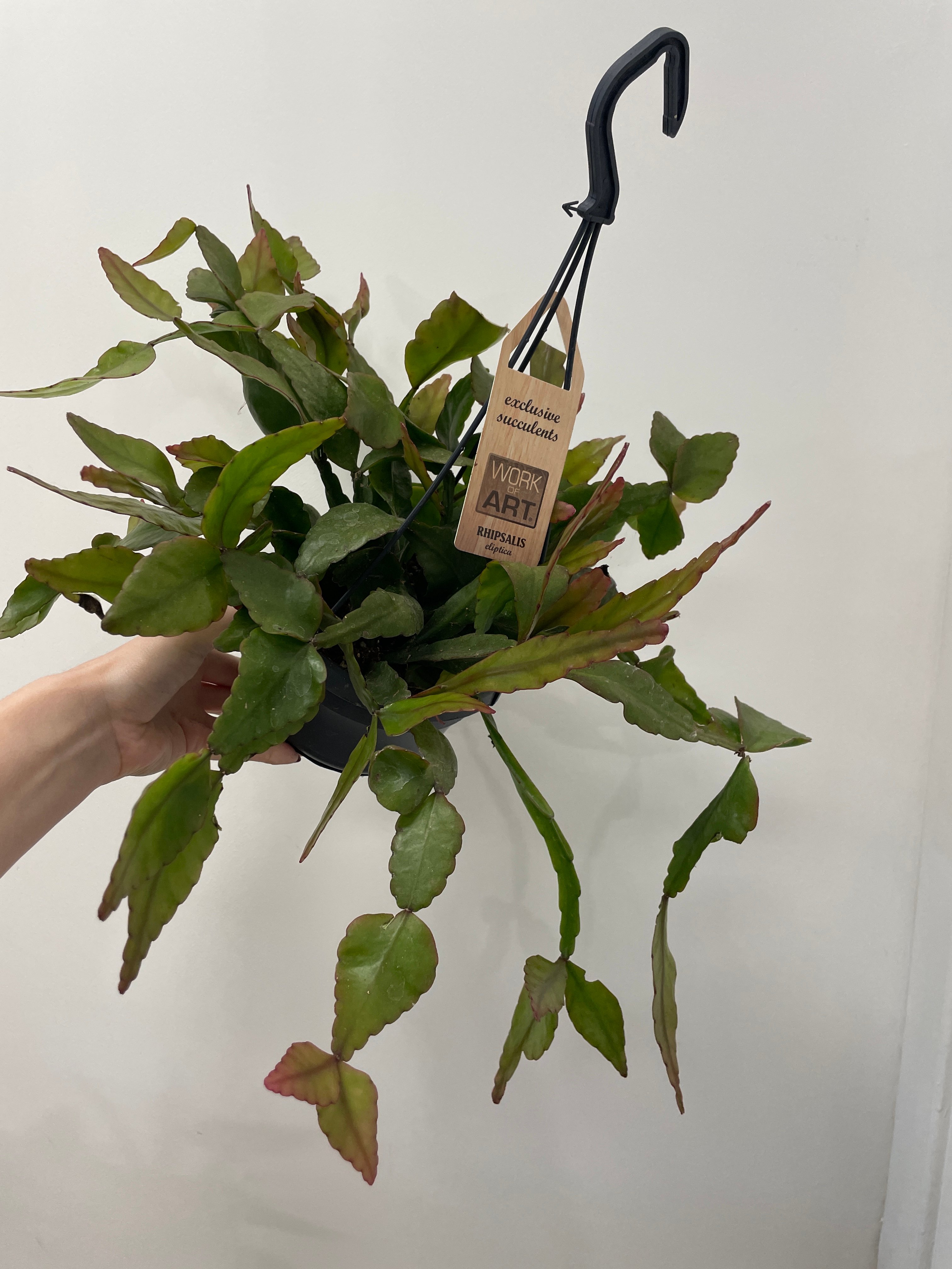 This Rhipsalis is a true wonder to watch grow and mature. The fleshy unusual leaf-like foliage grows in compact little sections. With each new section growing off the tip of the previous one. This easy-to-care-for plant would look stunning in a high-standing pot where you could look down on the foliage as well as see it trail down the sides.