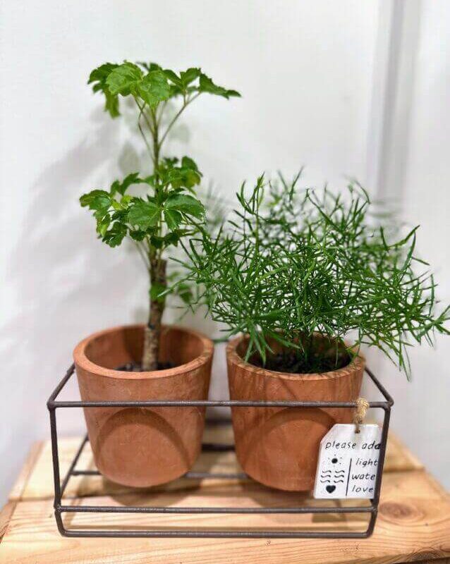 2 reviews for Double Rustic Terracotta Planters Metal Frame 2 x 8cm pots