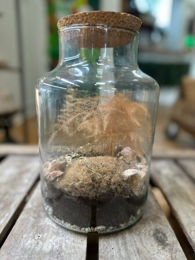 While some terrariums thrive from day one, others may require adjustments to create the ideal environment for your plants and moss. It’s possible that some plants may perish, mould may appear on elements of the terrarium, or you might need to adjust the terrarium’s location in your home.