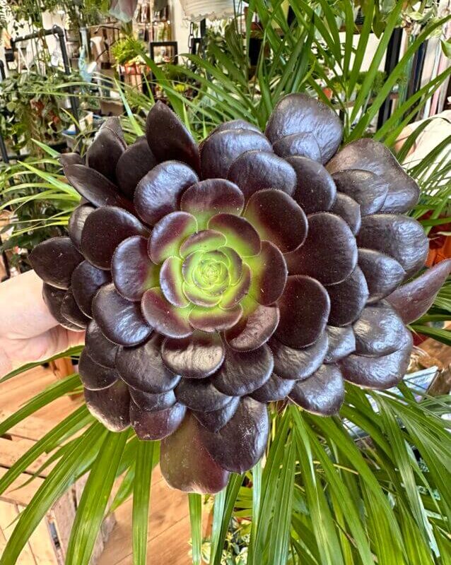 The Aeonium Velour Black is admired for its dark burgundy, almost black leaves, which add a dramatic touch to any decor. It’s slow-growing, so it won’t require frequent pruning or reshaping.