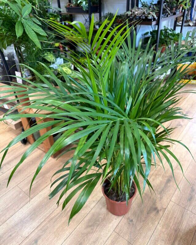 This palm enjoys typical indoor temperatures ranging from 18°C to 27°C. It can tolerate cooler temperatures down to about 10°C but keep it away from draughty areas.