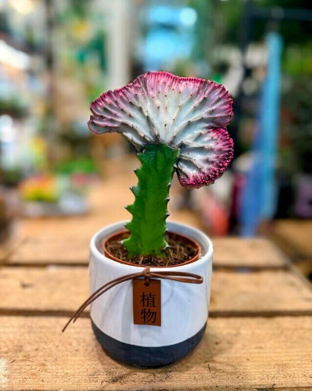 Pink Variegated Euphorbia Cristata is created by grafting two different Euphorbia. This beautiful plant doesn’t require lots of attention but looks amazing. Often called marmaid cactus, fishtail cactus or coral cactus.