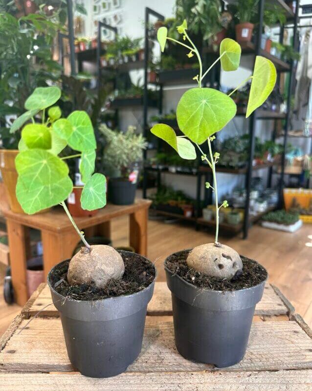 The Stephania Erecta is celebrated not only for its striking ‘potato’ caudex but also for its vine-like leaves that emerge after dormancy, adding a touch of exotic charm to any room.