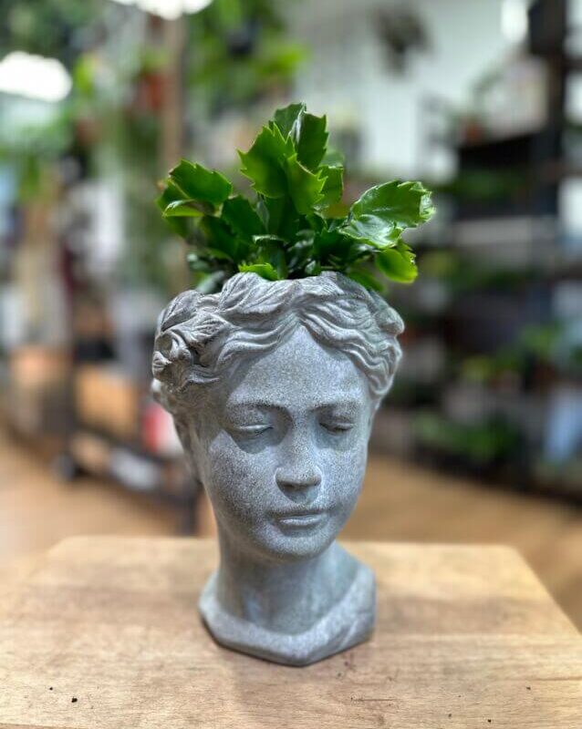 A Concrete Head Planter with rustic details will be a perfect addition to your indoor jungle and make a great gift for any plant lover. Created from excellent quality white concrete is waterproof and durable. Classic and minimalistic fits most interior designs for homes and workplaces.