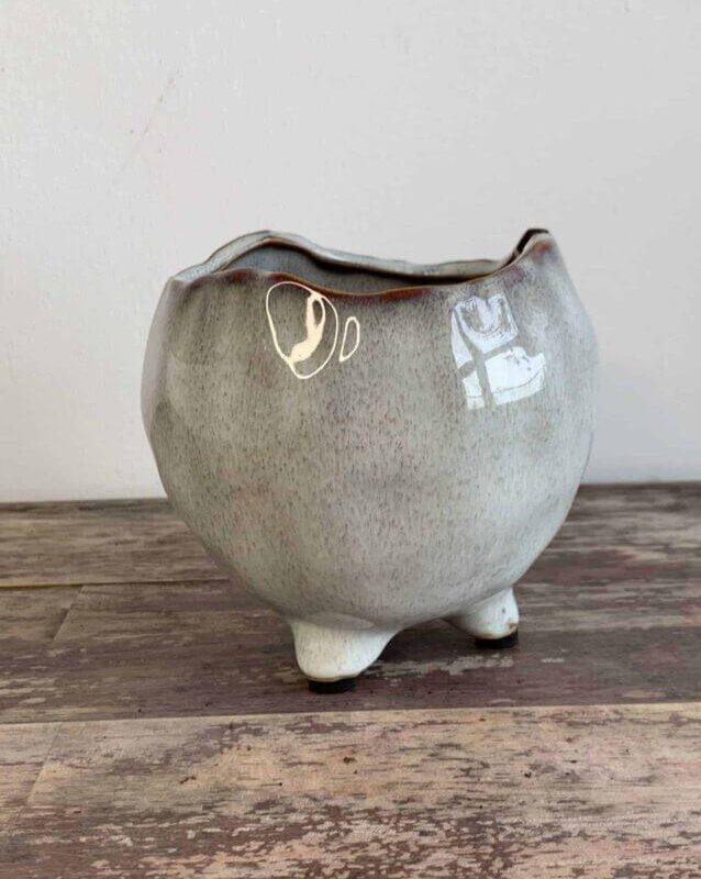 This wonky design planter is in a kind of off white colour, it stands on little legs and is a stunning way of displaying your favourite plant.