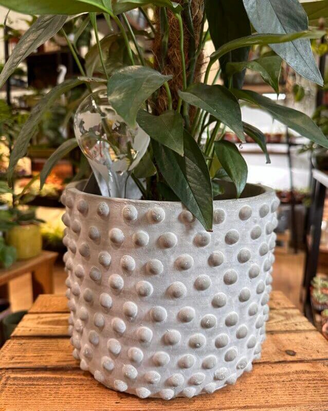 Classic, minimalistic concrete planter in a light grey colour. Finished with 3D dots patter. Suitable for medium and large houseplants.