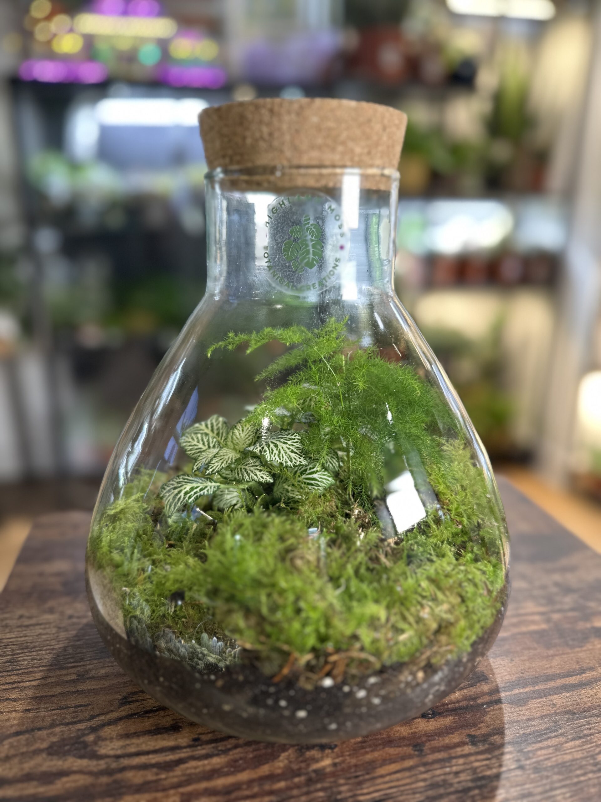 All plants and materials are the same quality used in our regular terrarium kits. The glass may feature bubbles, waves, lines or marks, which are part of its recycled nature and individual charm.